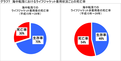 昔の資料ですが、上のグラフを見るとどのくらいライフジャケット着用が大切かわかると思います!